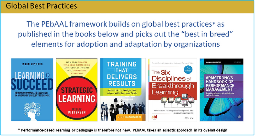 The implementation of our PEbAAL framework typically starts with a business needs as well as a training needs analysis (TNA) involving both the organization as well as the learners, especially those at supervisory levels.